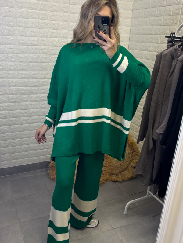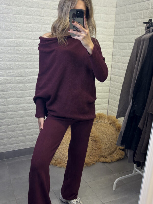 Abby Σετ Πλεκτό – Εκρού με μπορντώ ρίγα